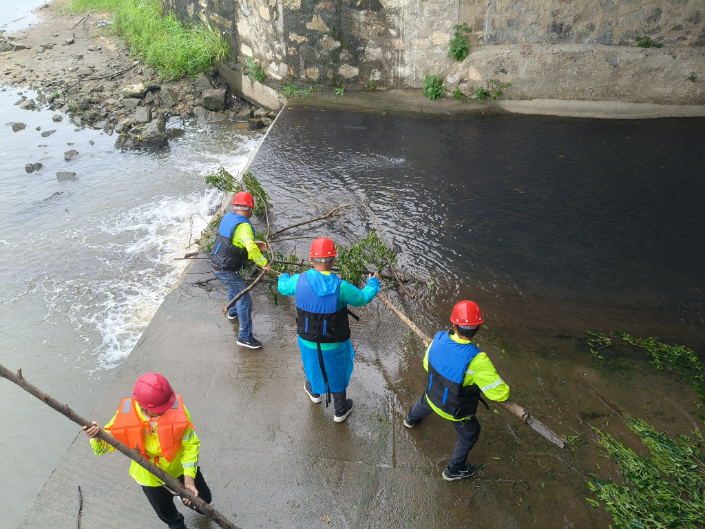 利用这次演练,应急抢险组的队员们对毕港桥上游充刷下来的断树和桥梁下的杂物进行清理,并对桥梁桥墩进行了仔细的排查,确保汛期桥梁安全。