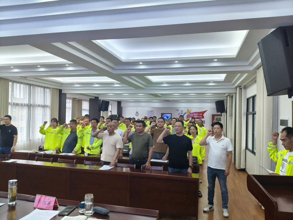 县公路事业发展中心负责人何银涛同志、中心分管应急处置工作和畅洁公司总支委员范学华同志、中心安全股股长郭振兴同志、畅洁公司总经理程再云同志出席活动,畅洁公司全体干部职工参加会议。会上,中心负责人何银涛同志、畅洁公司负责人程再云同志作会议动员讲话,号召全体干部职工树牢安全红线意识,拧紧安全生产总阀,有力推动畅洁养护公司安全生产各项目标任务圆满完成。