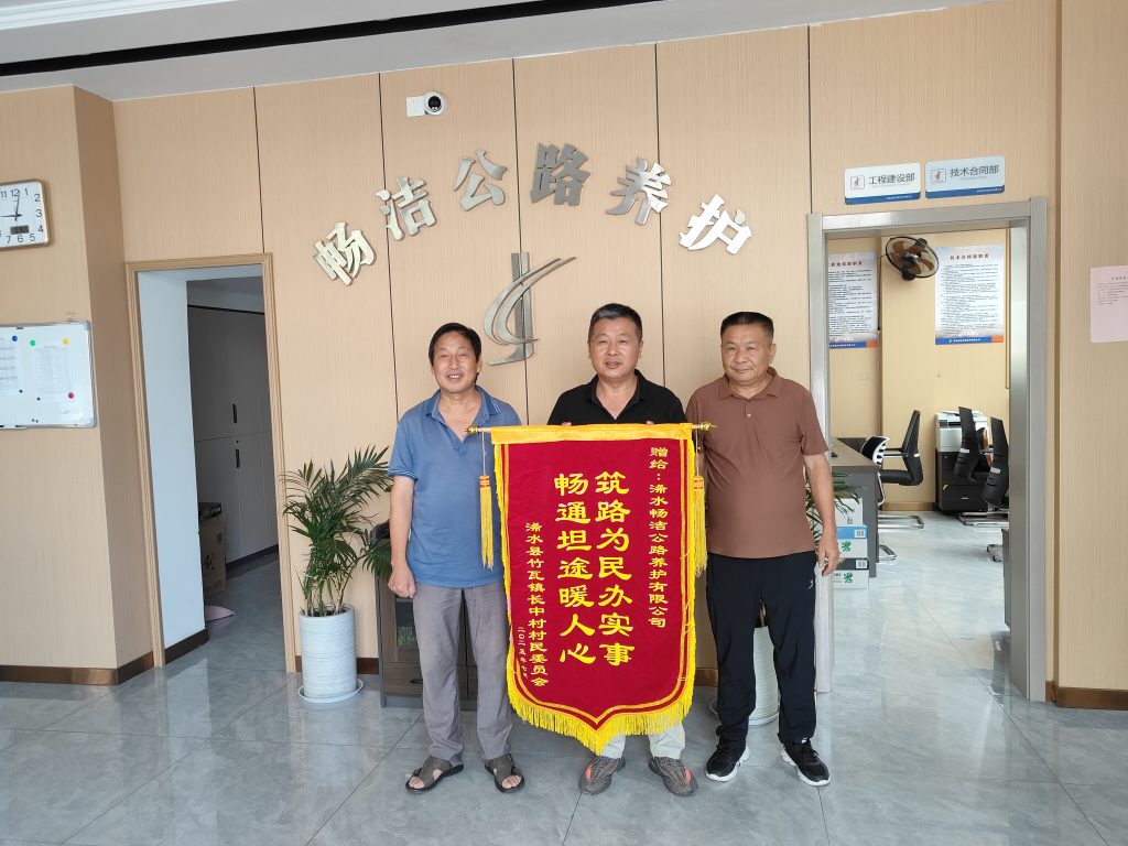 “金杯银杯,不如老百姓的口碑”,这面锦旗不仅是对畅洁养护公司工作的肯定,更是彰显了畅洁养护公司与村镇福祉紧密相连的责任担当。这一段段焕然一新的通村路口,既是畅通村民的“暖心路”,也是畅洁养护公司通往民心的连接线。
