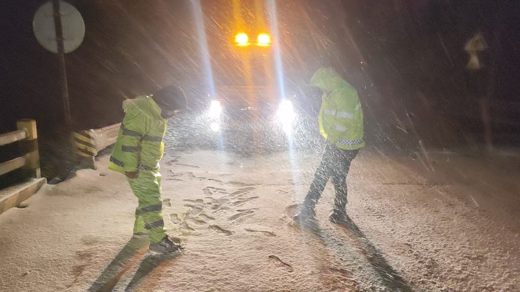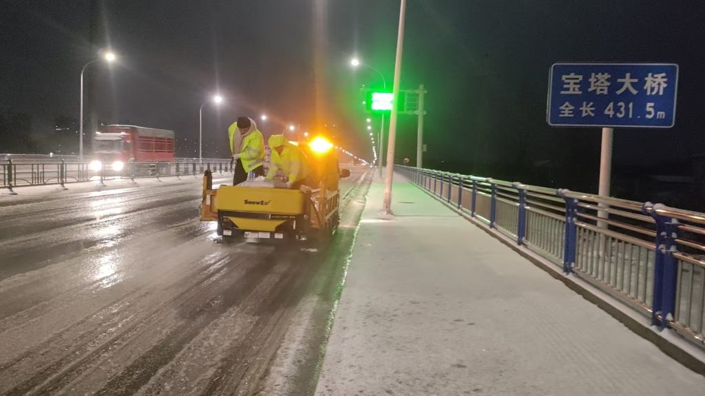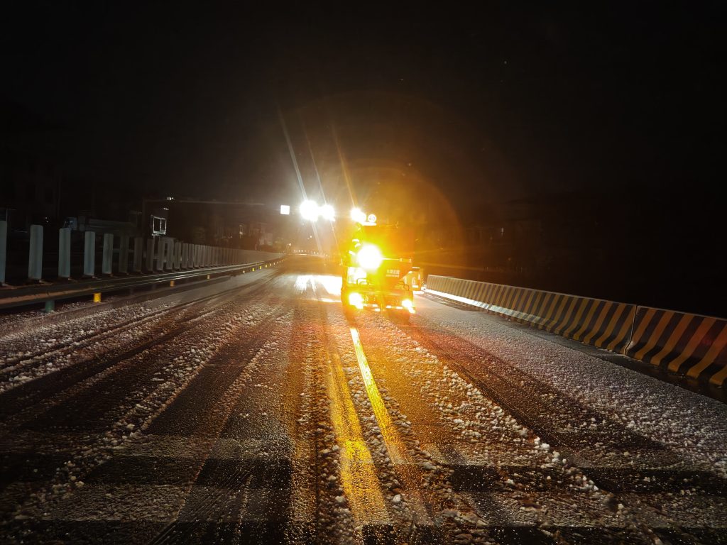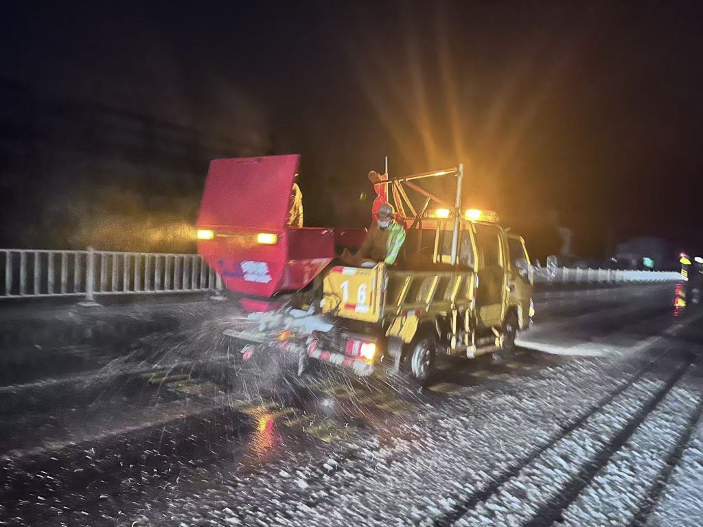 “04:31 三台桥面有积雪,正在撒布融雪剂……”
